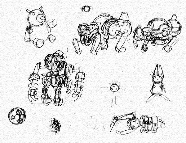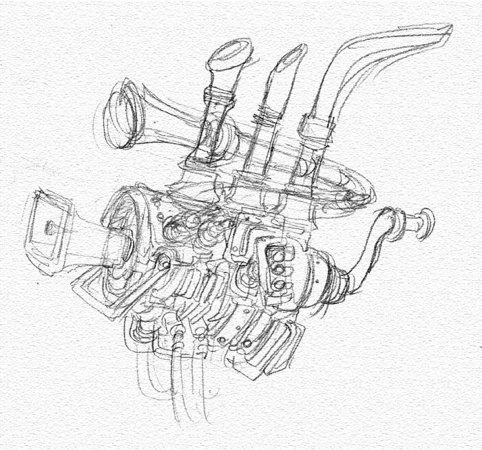本編では勿論ちゃんと描かれておりますが、設定段階ではこのようにかなり大まかで、描きながらディテールを決めていってる、