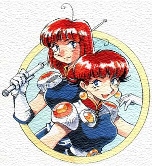 ナムルーに敵対するプルコ&ククスの悪の美少女双子。髪は当初黒の予定だったようだけど、ジャパンミックス版の単行本では赤毛になっておりますね。 この作品のキャラクターのネーミング韓国料理がメインになってるのだけど、作品世界も含めて似たような作品「キャプテン・クッパ」がBS2で始まったときには焦ったけど話題にもならなかったのでよかったんだか何なんだか(苦笑)。 まあ「爆裂ハンター」でもそんな回はあったか。 なおこのイラストは竹版ではページ折り返し部分でしたがジャパンミックス版では裏表紙イラストになっています。 |