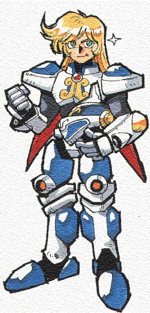 マルーナの護衛隊長のキーン。コミックガンマでの連載当時、男子中学生読者から彼のイラストが送られてきたことがあり、やはりこういったヒーロー然としたキャラクターは少年誌的人気を得るんだなあと感動しました。 惜しむらくは本編で活躍の機会が殆ど無かったところでしょうか。 作者的には海賊親分(名前は遂に無かった)のほうがお気に入りで使ってましたからなー。 竹版の単行本を用意するときには海賊親分も仲間になるという展開は予期してなかったので、このキーンのようなデフォルメタッチの本採用イラストは存在するのですが、竹版で使用する予定のリアルタッチのイラストはありませんでした。 2003.3.14 |