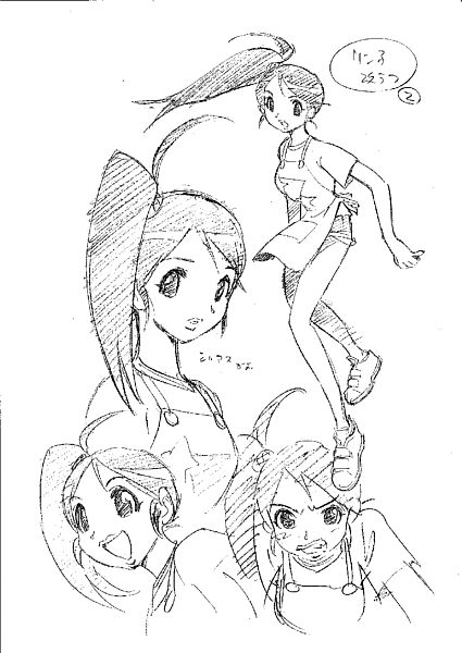 王子のデザインの苦闘に比べるとリン子ちゃんの変更は 比較的早く決定しました。 一番下のカラー映像は、作品掲載後に描かれたもの、 上のラフは作品着手前に描かれたので、 微妙な描き慣れの変化が見受けられます。 前のページに戻る TopPageへ戻る
